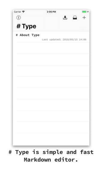 Type, iPhone kullanıcıları için tasarlanmış basit ve hızlı bir Markdown editörüdür. Uygulama, kullanıcıların Markdown formatında metin yazmalarını kolaylaştıran çeşitli özellikler sunar. Kolay önizleme, otomatik kaydetme ve 3D touch desteği gibi işlevler, kullanıcı deneyimini geliştirirken, Spotlight ile arama yapma imkânı da sunar. Ayrıca, Markdown dosyalarını diğer uygulamalardan içe aktarma ve Qiita, Github gibi platformlara gönderim yapma desteği ile geniş bir kullanım alanı sağlar.